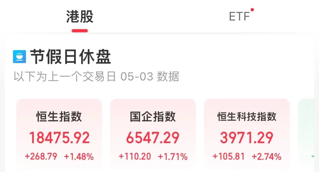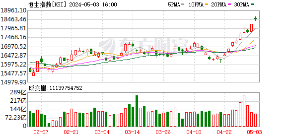 “五一”时期港股延续此前上升势头,5月3日,恒生指数高开高走,报收18475.92点,创8个月来新高。科技股阐扬更为亮眼,恒生科技指数大涨2.74%,盘中站上4000点大关。总共假期时期,恒指大涨逾4%领涨人人;恒生科技指数飙升超7%。