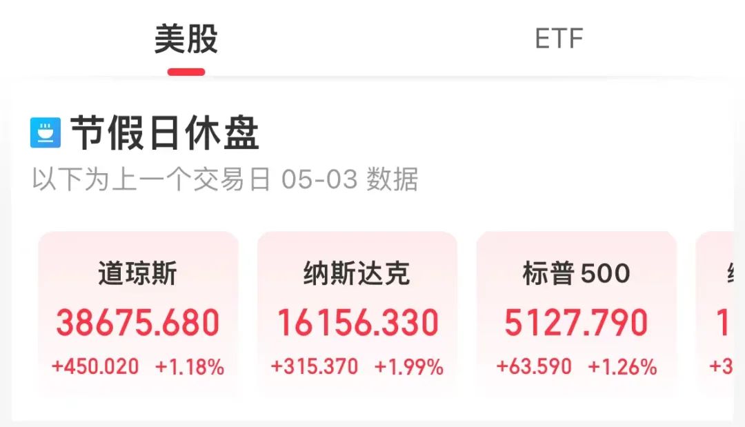 外盘来看,好意思股三大指数至少连涨两天,修起了此前皆集下降的失地。5月1日至5月3日,谈指累计上升2.27%,纳指累计上升3.18%,标普500指数累计上升1.83%。